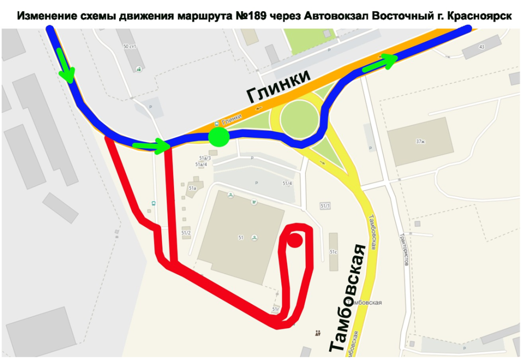 Уважаемые пассажиры! С 30.03.2026г. маршрут следования через автовокзал восточный будет осуществляться по новой схеме (выделено синим), без заезда на территорию Автовокзала (выделено красным). Схема представлена ниже. В остальном всё остаётся без изменения.